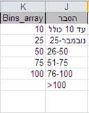 Bins_array – בעמודה K נזין את מערך המרווחים לפיהם נרצה לבדוק את שכיחות כמות המלאי ,