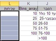 בעמודה L נבחר טווח תאים הכולל תא אחד נוסף על התאים של Bins_array