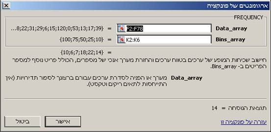 נבחר בפונקציה הסטטיסטית FREQUENCY