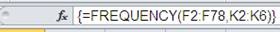 לדוגמה, ניתן להשתמש בפונקציה FREQUENCY לבדיקת שכיחות כמות מוצרים בטווחים מסוימים , לבדיקת שכיחות ציונים בטווחים מסוימים.